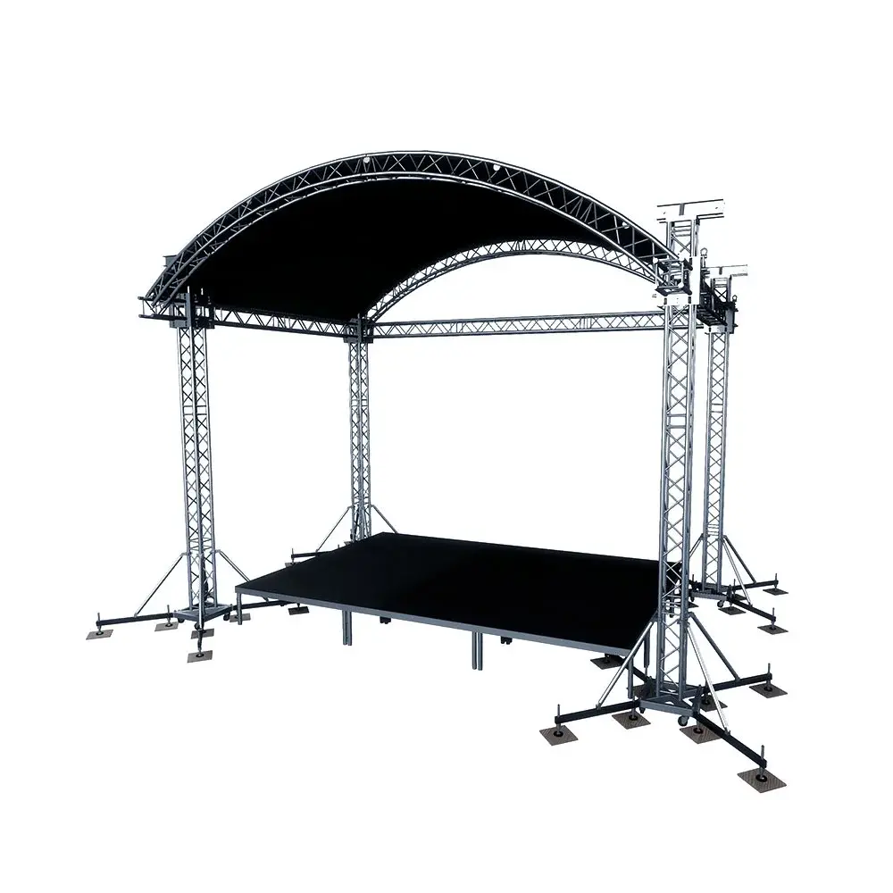 Арочная крыша для сцены размером 4×6 м. Тент серого цвета.